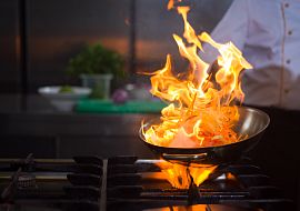 Flambování zahrnuje polévání potraviny alkoholem a jeho zapálení. Tím vzniklá šťáva získá unikátní chuť po alkoholu.