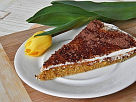 Tento koláč je možná malinko pracnější, zato ale vynikající. Pokud použijete menší formu (já měla v průměru 28), budete mít koláč vyšší.