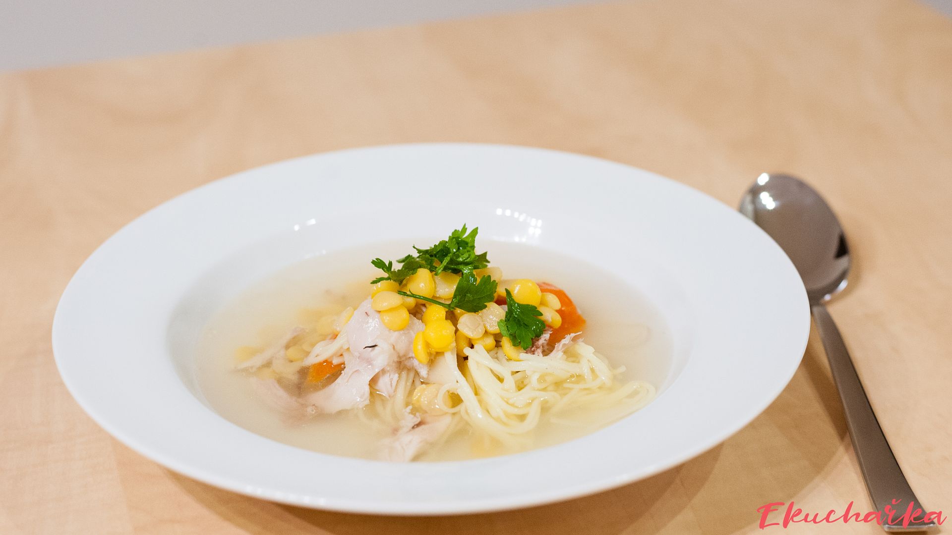 Kuřecí vývar k nedělnímu obědu můžeme připravit na mnoho způsobů. Vyzkoušejte ten s luštěninou, žlutým hrachem. Pro přípravu je ideální, pokud jej nezapomenete předem namočit, bude uvařený za 10 minut.