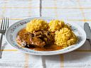 Pomalu dušená krkovička si skvěle rozumí se žampionovou omáčkou a kari rýží. Zachutná ale i s knedlíkem.