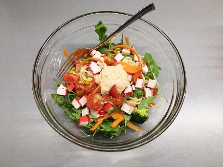 Jakmile jsou těstoviny vychlazené, přidáme do nich dle chuti sůl, pepř a olivový olej cca 1 lžíce a dále rajčata, mozzarellu a připravenou zálivku.