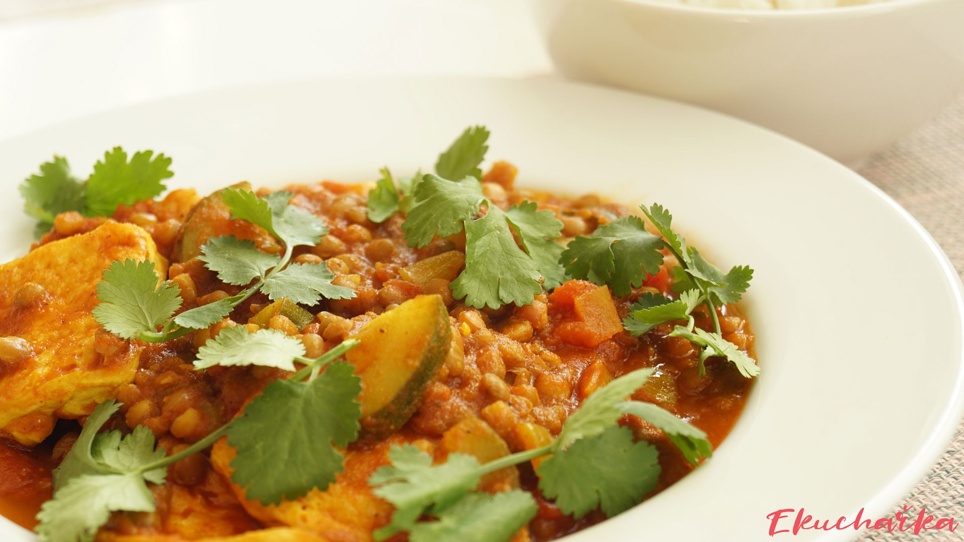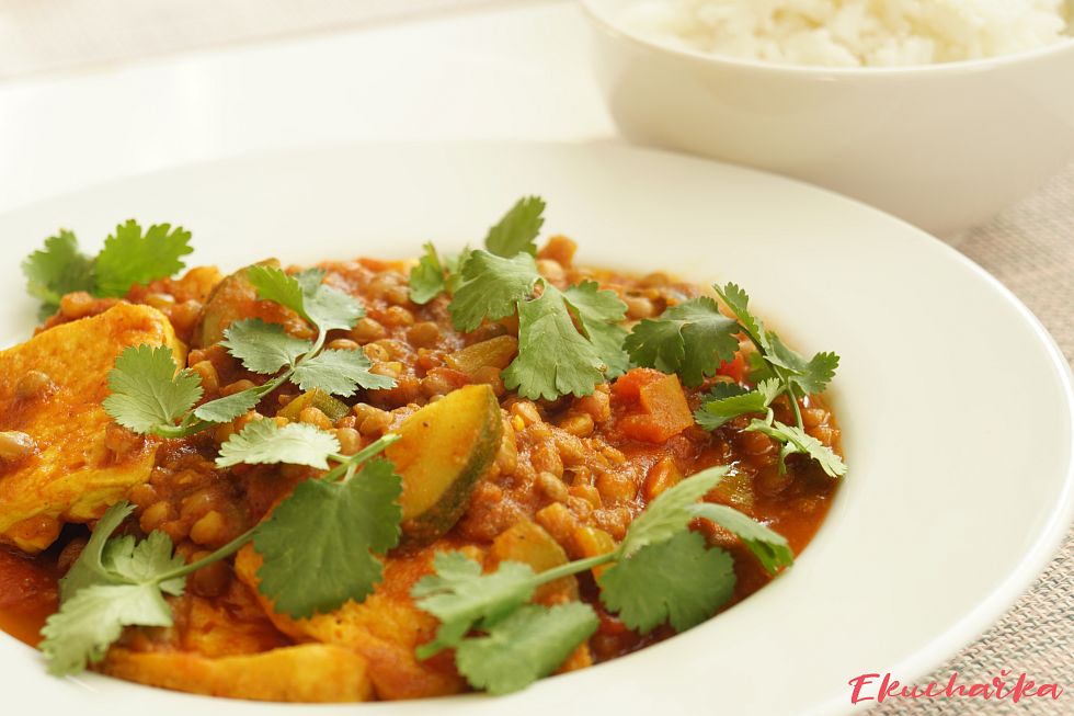 Rychlé a chutné curry bez masa. Kombinace tofu a čočky dodá dostatek proteinů.