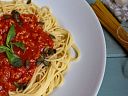 Uvaříme špagety, scedíme a podáváme s posypanými semínkami.