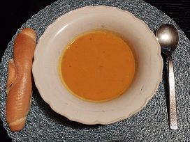 Dýňovou polévku podáváme s pečivem nebo opečenou houskou či krutóny.