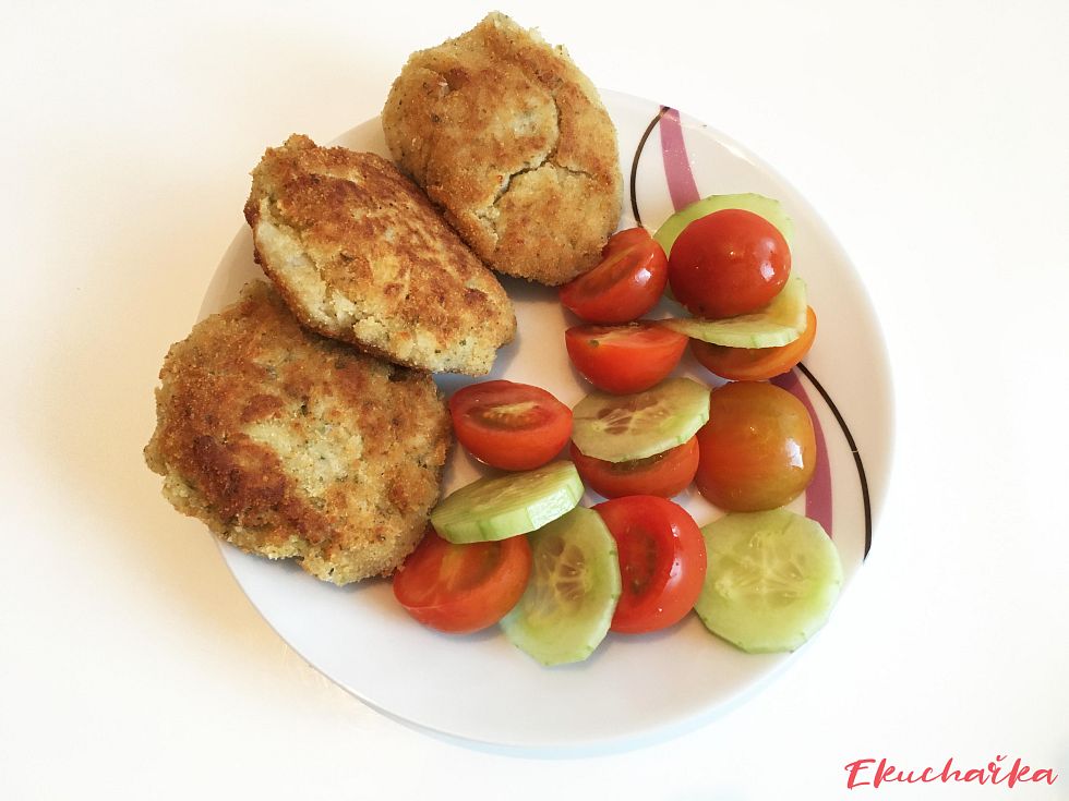 Smícháme s vejci a strouhankou. Tvarujeme placičky, které obalujeme ve strouhance a smažíme na oleji z obou stran.