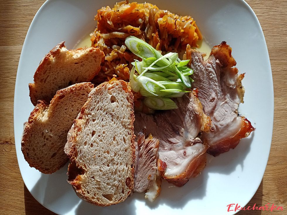 Upečené koleno podáváme se zeleninou z pekáče a čerstvým pečivem.