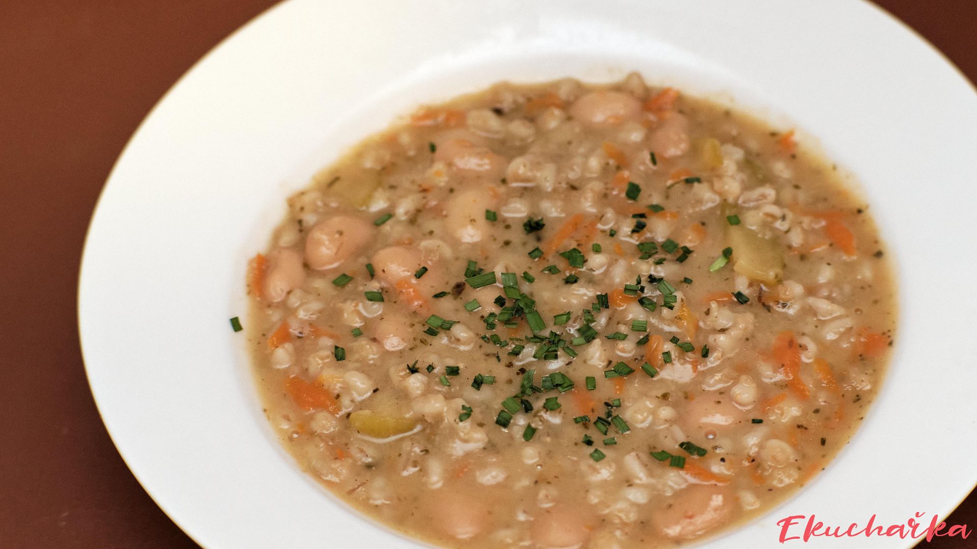 Výborná sytá polévka, která se hodí před hlavním chodem ale také s pečivem jako večeře. Kroupy a velké fazole chutnají výtečně, polévky je velký hrnec, a proto nebudete litovat času stráveného u plotny navíc. Základem polévky je samozřejmě doma připravený vývar z uzeného vepřového kolene.