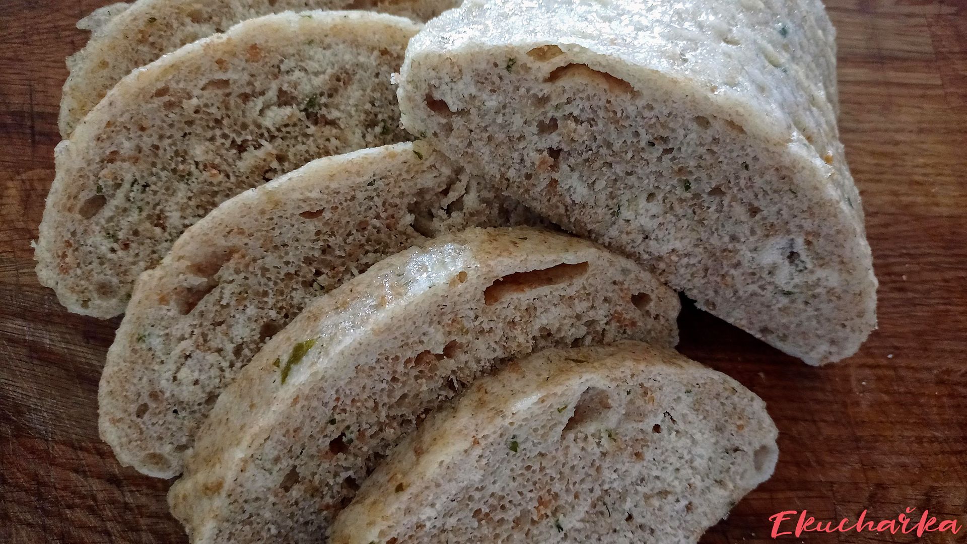 Přidáme sůl, cukr, rozdrobené droždí, nasekanou petrželku, olej a zalijeme vlažnou vodou.