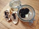 Přendáme do vymytých suchých sklenic, ozdobíme švestkami a zalijeme trochou rozpuštěného másla.