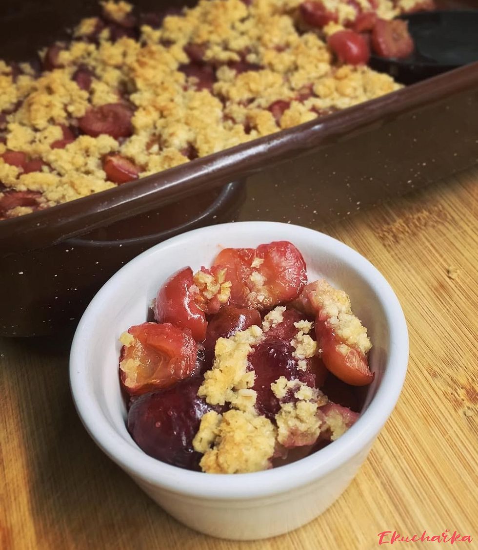 Třešňový crumble s drobenkou s ovesnými vločkami