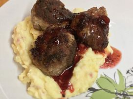 Vytištěno z webu ekucharka.cz, recept si můžete prohlédnout na adrese https://www.ekucharka.cz/recept/4520-masove-koule-s-bramborovou-kasi-se-slaninou-a-brusinkovou-omackou