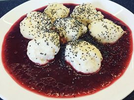 Proteinové tvarohové knedlíčky se švestkovou omáčkou