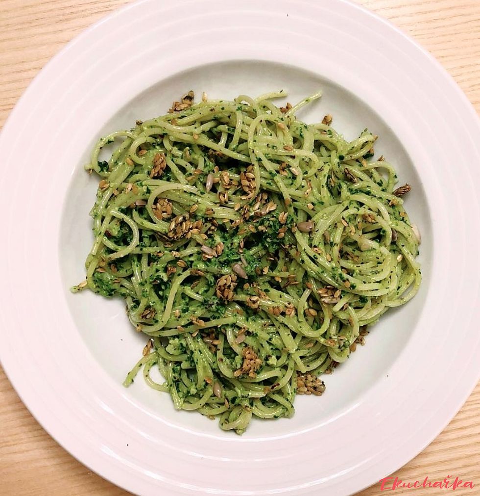 Tento recept na špagety s pestem z kadeřávku, mladého špenátu a medvědího česneku je osvěžující, výživný a plný zelené energie. Kombinace listové zeleniny s jemně oříškovou chutí semínek a parmazánu vytváří lahodnou omáčku, která dokonale obalí těstoviny. Lehké jídlo, které potěší nejen chuťové buňky, ale i tělo – ideální pro jarní nebo letní dny.