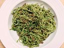 Špagety s pestem z kadeřávku, špenátu a medvědího česneku