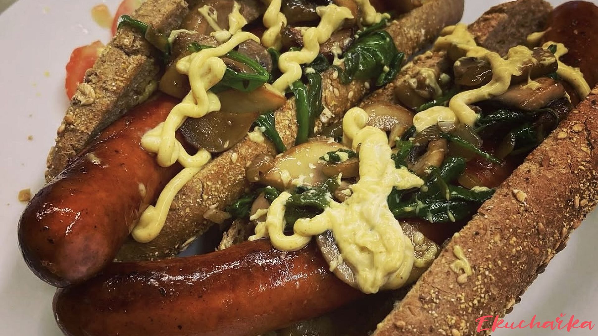 Tyto domácí hotdogy jsou neobvyklou a lahodnou variací na klasiku. Kombinují opečené žampiony a čerstvý špenát se šťavnatým párkem v pečivu, doplněné jemnou hořčičnou omáčkou. Ideální na večeři nebo neformální setkání s přáteli.
