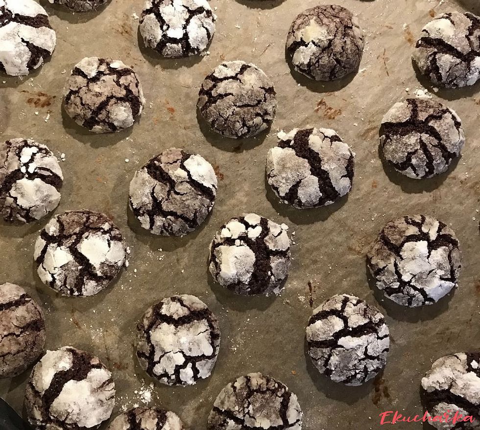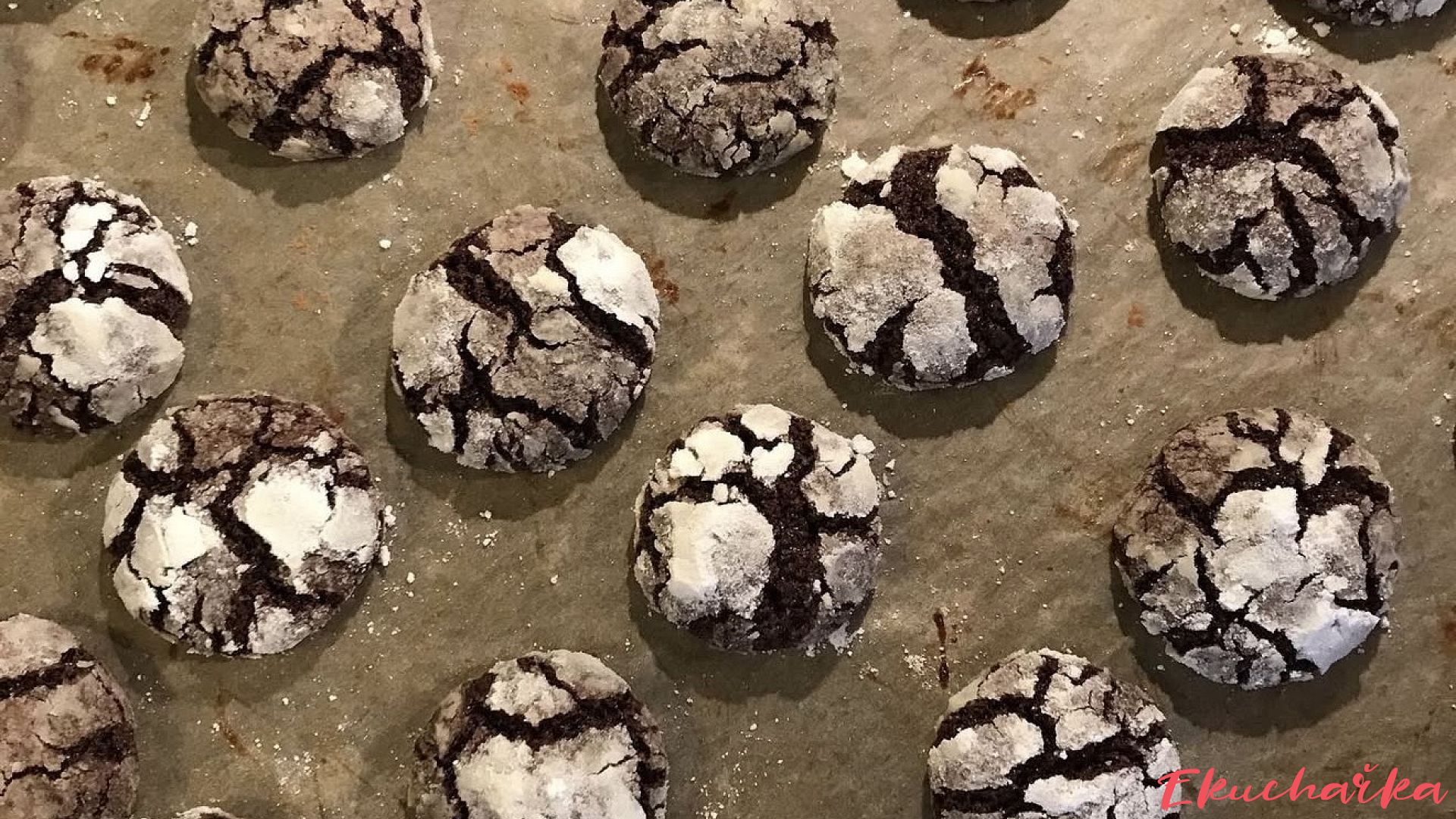 Měkoučké, vláčné a intenzivně čokoládové sušenky, které jsou na povrchu krásně popraskané. Díky obalení v moučkovém cukru vznikne kontrast tmavého těsta a bílých prasklin. Jsou snadné, ale vypadají efektně – ideální na svátky i ke kávě.