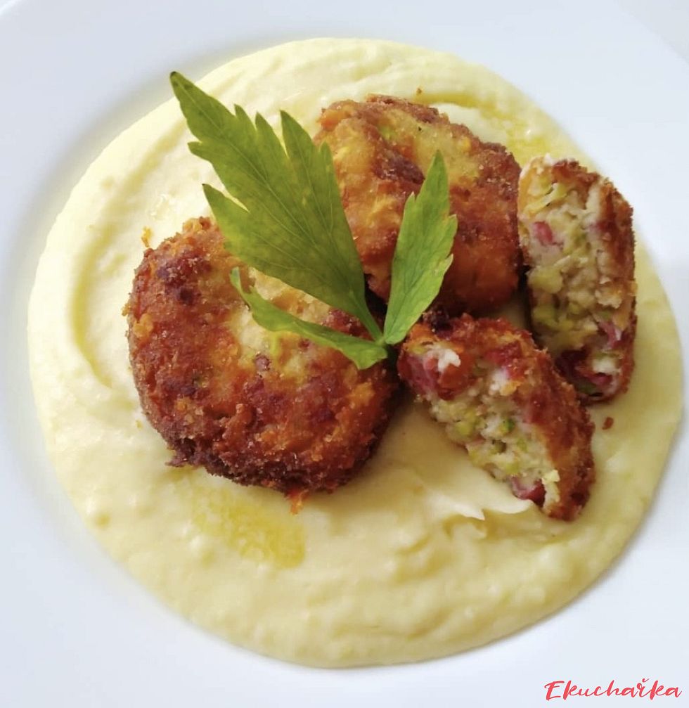 Šťavnaté cuketové karbanátky doplněné o opečenou slaninu mají díky trojobalu krásně křupavou krustu. Hodí se k bramborám, bramborové kaši, ale i samotné s dipem.