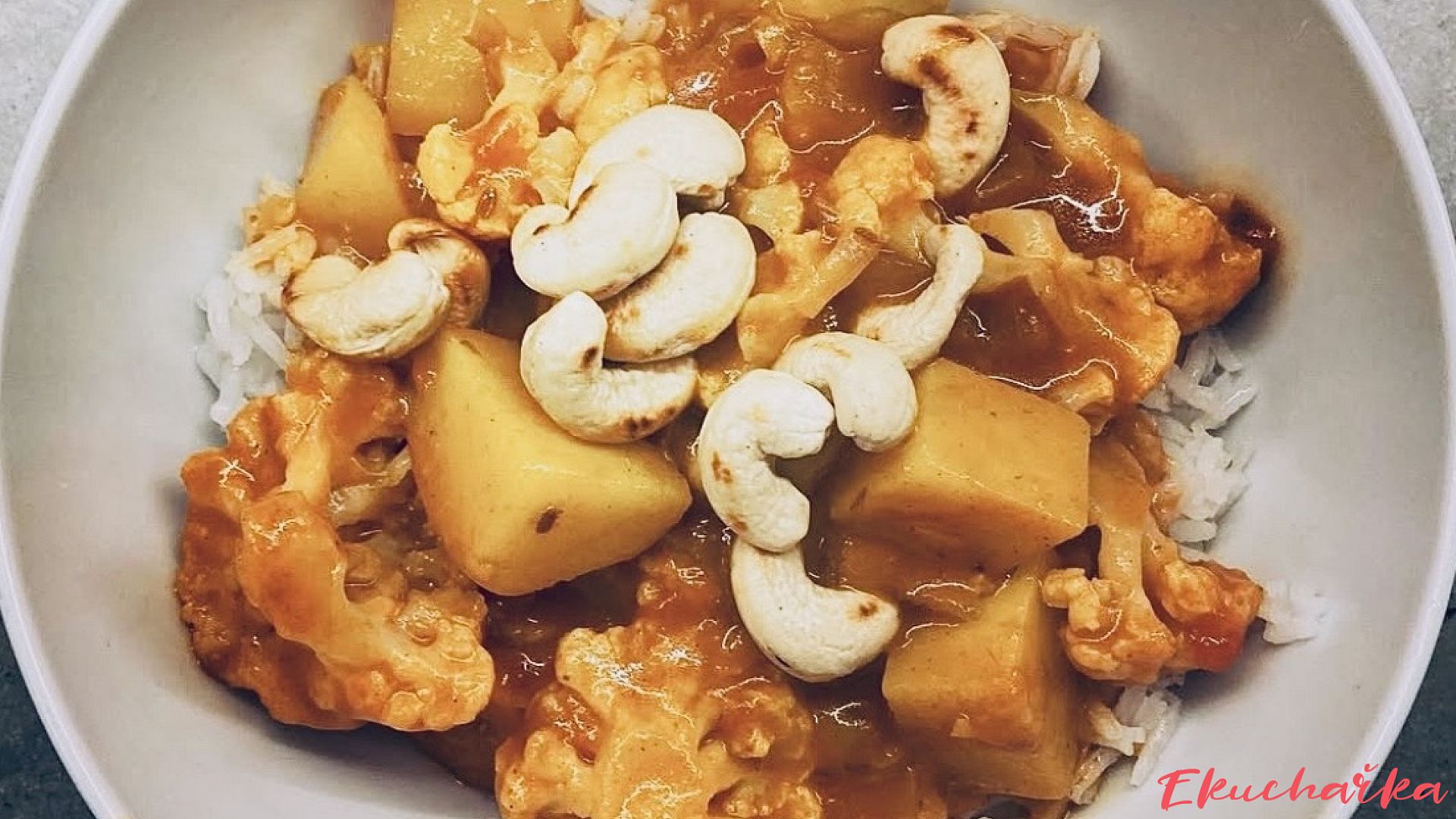 Tohle květákovo-bramborové kari je voňavé, jemné a krásně krémové díky kokosovému mléku. Je to jednoduché jídlo, které přitom působí jako z indické restaurace. Zemitý květák, měkké brambory a lehce pikantní koření tvoří dokonalou kombinaci. A když se při podávání posype křupavými opečenými kešu oříšky, vznikne z něj hřejivé a harmonické jídlo, které zasytí i zahřeje.