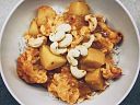 Podáváme s rýží a porci posypeme opečenými kešu ořechy.
