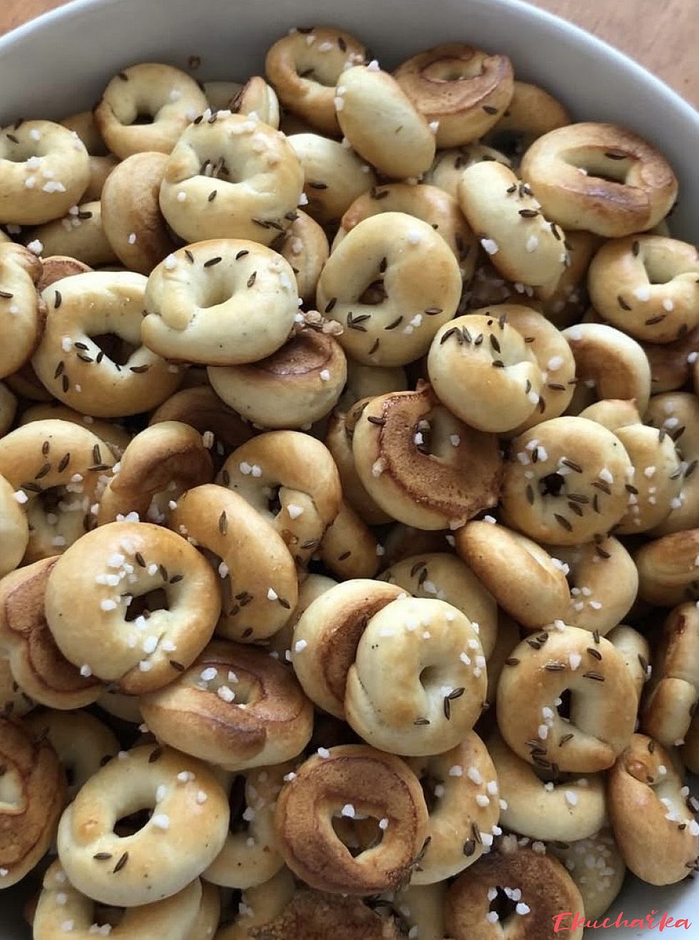 Pečeme při 180 °C cca 20–25 minut, dokud kroužky nezezlátnou a nebudou suché a křupavé.