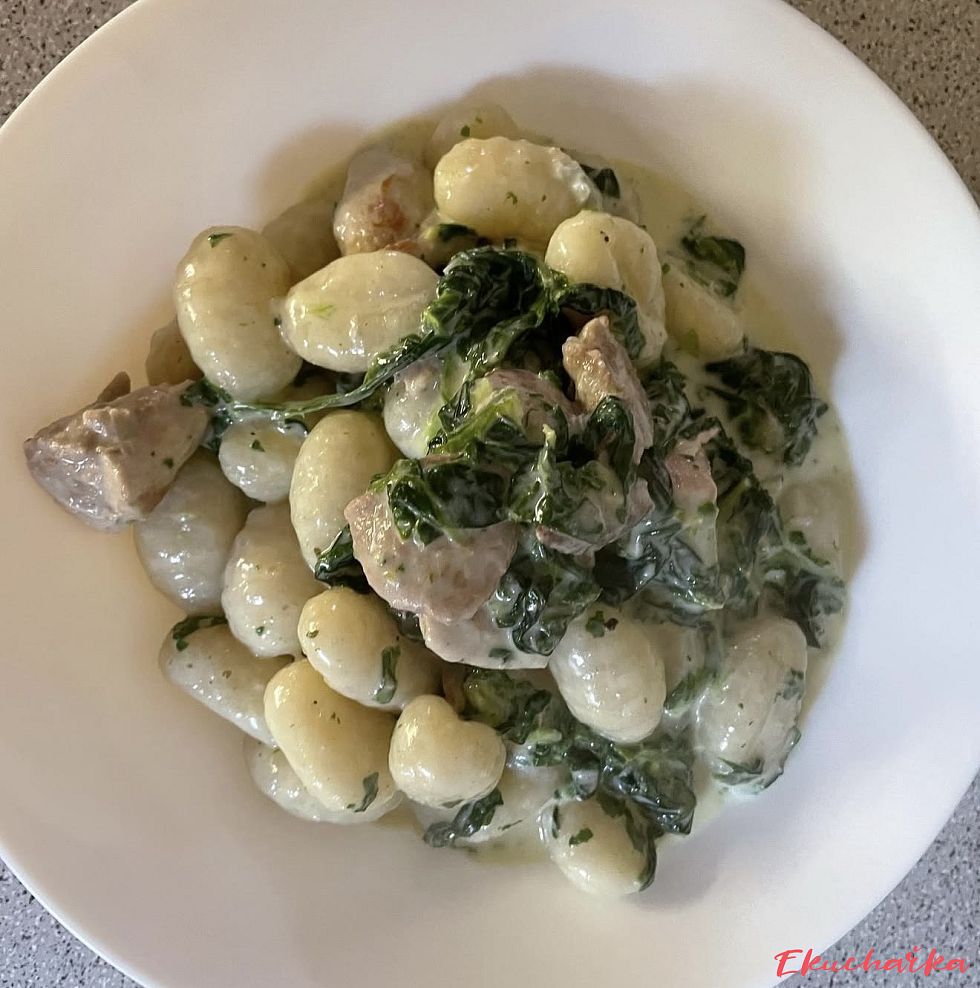 Krémové gnocchi s jemnou vepřovou panenkou, listovým špenátem a výraznou gorgonzolou tvoří dokonalou kombinaci chutí. Rychlé a syté jídlo, které potěší milovníky italské kuchyně.