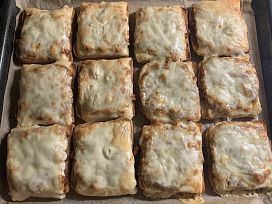 - Rozložíme toasty na plech vyložený pečicím papírem.
