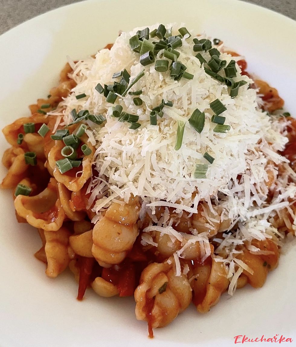 Uvaříme těstoviny podle návodu, nejlépe al dente. Trochu vody z vaření si schováme na úpravu omáčky.