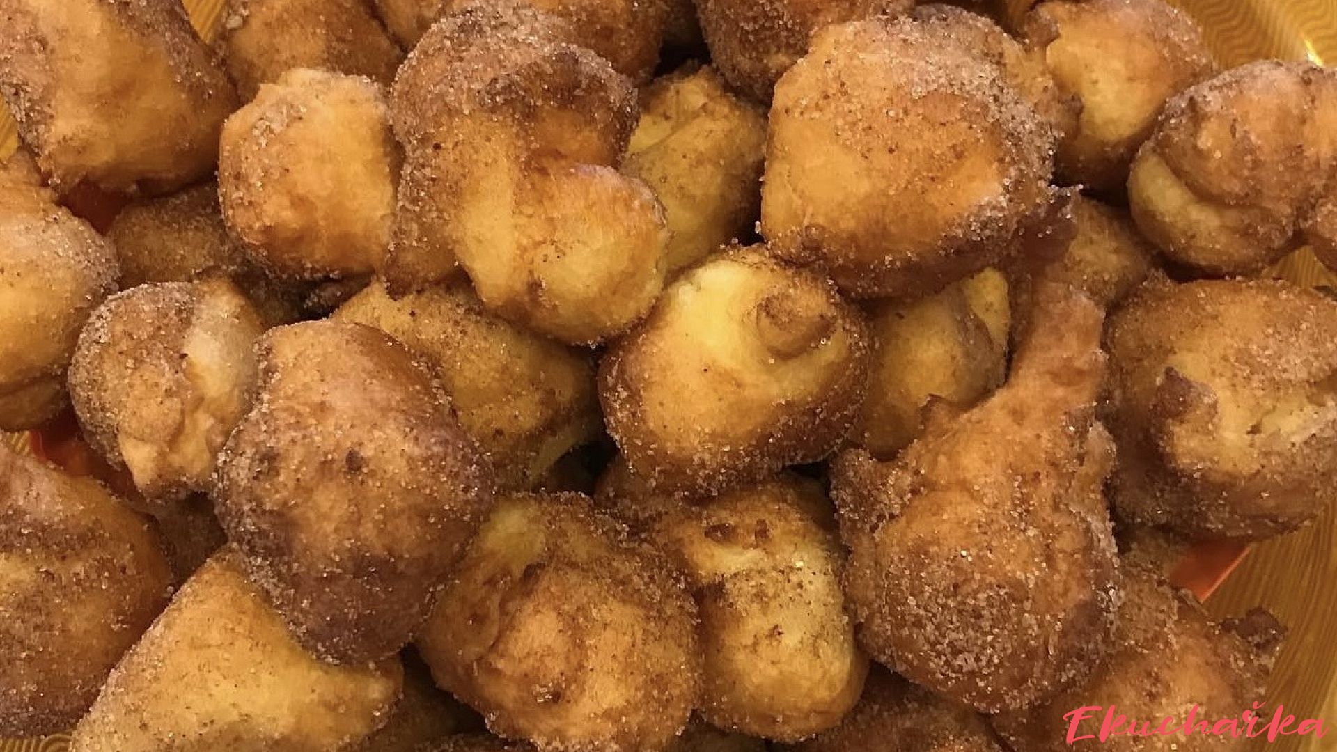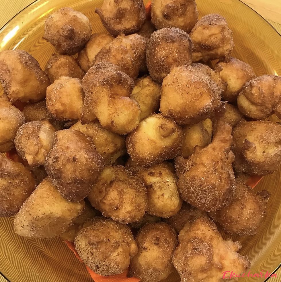 Obalíme ještě teplé ve směsi krystalového cukru a skořice.